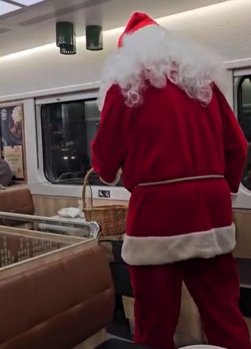クリスマスシーズンにVRに乗車したときは、サンタクロースも乗車しており、乗客にチョコレートを配るなど、楽しい旅になりました♪
