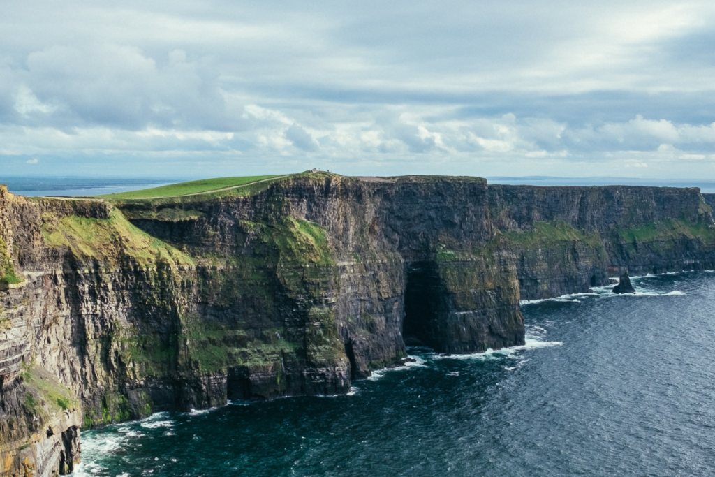 高さ200m以上の断崖が約8kmにわたって続く、アイルランド屈指の絶景ポイント。天気が良ければ、遠くにアラン諸島やゴールウェイ湾を望むことができます。